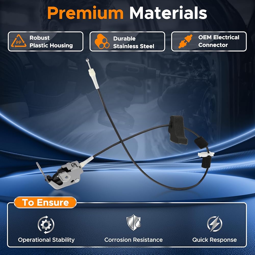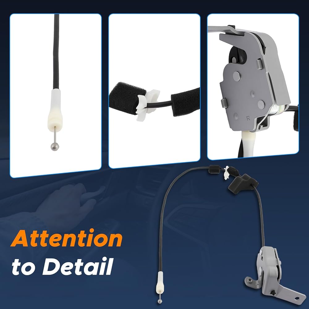 Replace component immediately: Prolonged use of the Cargo door lock latch & cable may cause structural wear or deformation, leading to door latching failure. This compromises both driving safety (e.g., door opening unexpectedly) and parking privacy. Immediate replacement is required to restore secure operation.