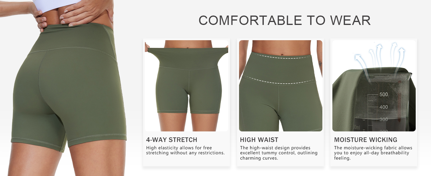 5" Length: These 5-inch inseam Biker Shorts provide ideal mid-thigh coverage for yoga, pilates, or summer runs, preventing inner-thigh chafing while showcasing toned legs