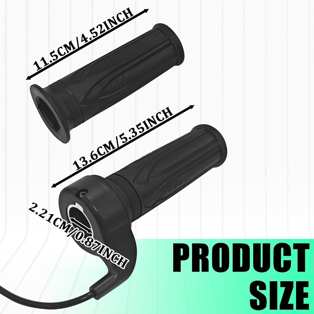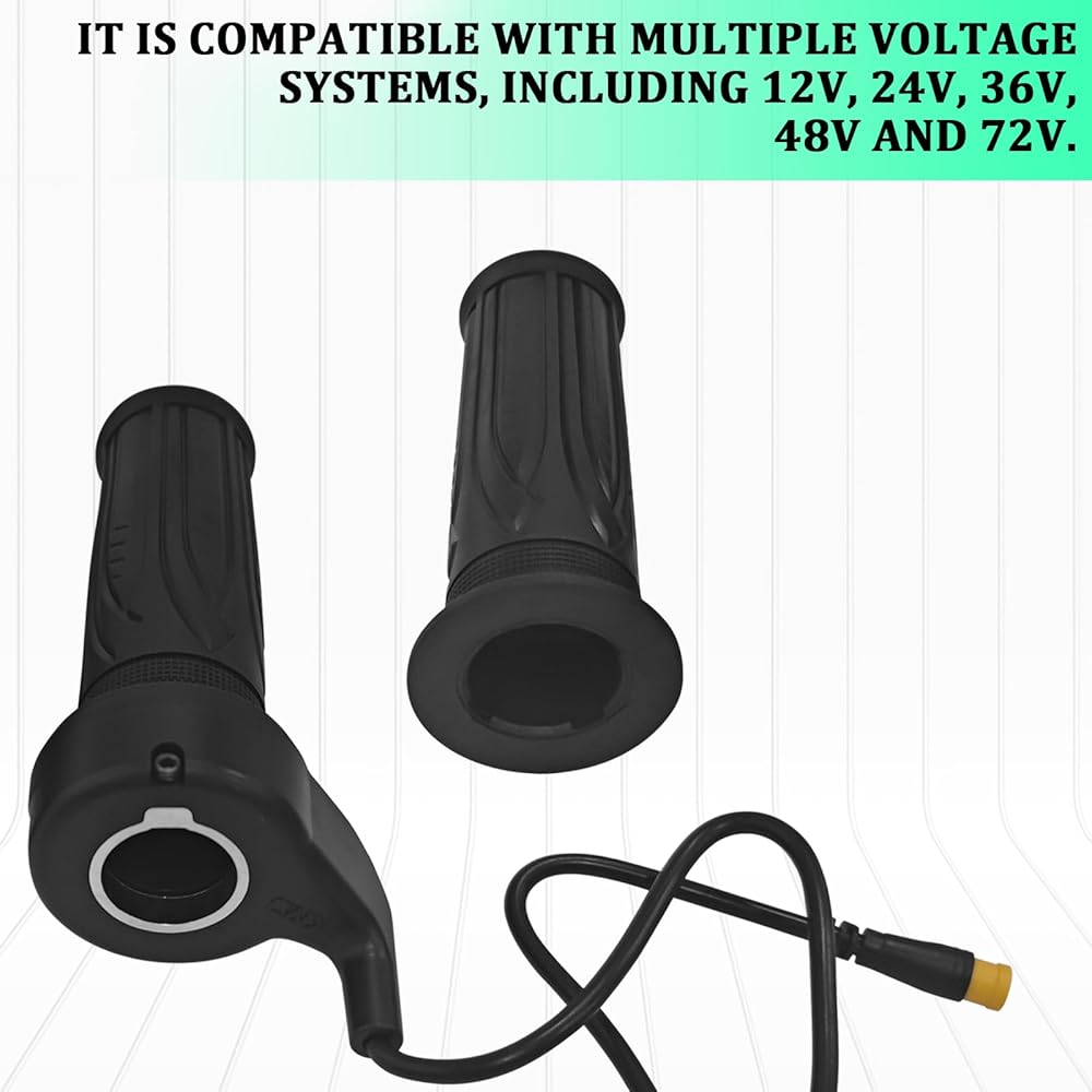 Wide Compatibility: These full twist throttle ebike handlebar grips are widely compatible with various vehicle types, including e-bikes, e-scooters, e-bikes, motorcycles, and e-mountain bikes. They are also compatible with multiple voltage systems, including 12V, 24V, 36V, 48V, and 72V. Please check the product dimensions and specifications before purchasing to ensure compatibility with your vehicle