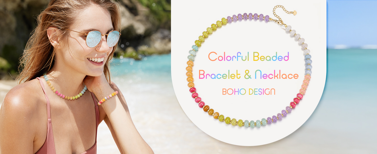 Rainbow Necklace Colorful Jewelry Gifts for Women:colorful beaded Necklace in a Bohemian style with different styles and colors .perfect for outdoor activities like summer beach holidays,vacations,wedding celebrations and daily wear.Special gifts for mother,mum,girlfriend,wife,sister, daughter,female friends etc.