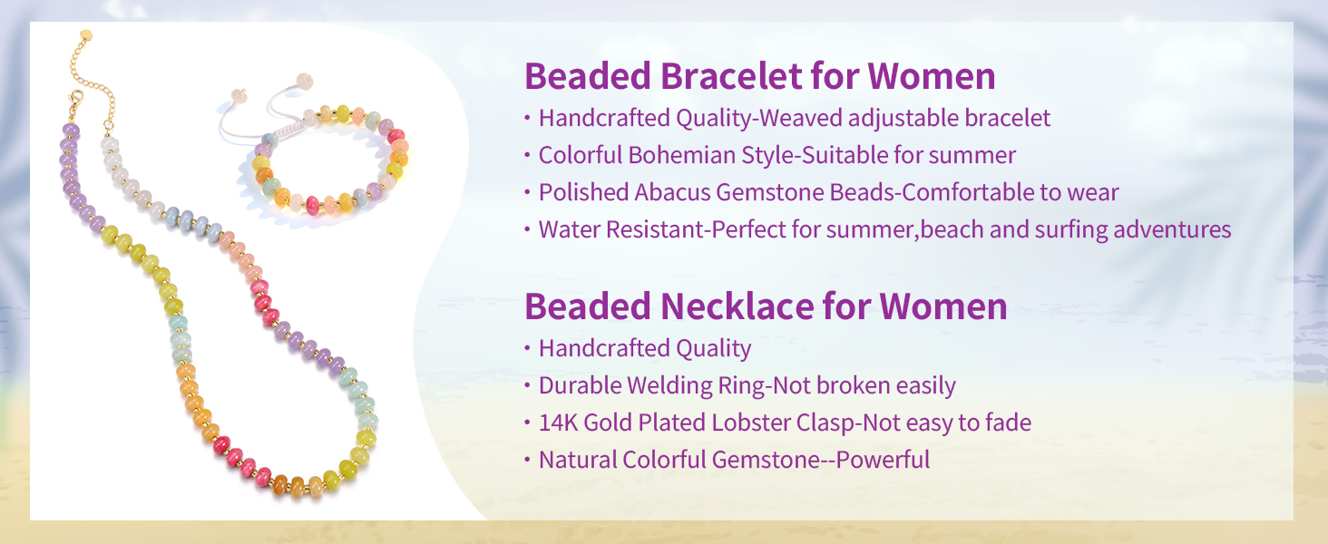 Colorful Necklace Adjustable Size: The 8*5mm/3*2mm Bead Necklace Length 18.5-20.5inches,which can be adjusted to the right size for most Women's neck to wear. Our handmade Womens beach Necklace are made of quality natural stone and rope material, not easy to tear or fade,Lightweight and comfortable to wear