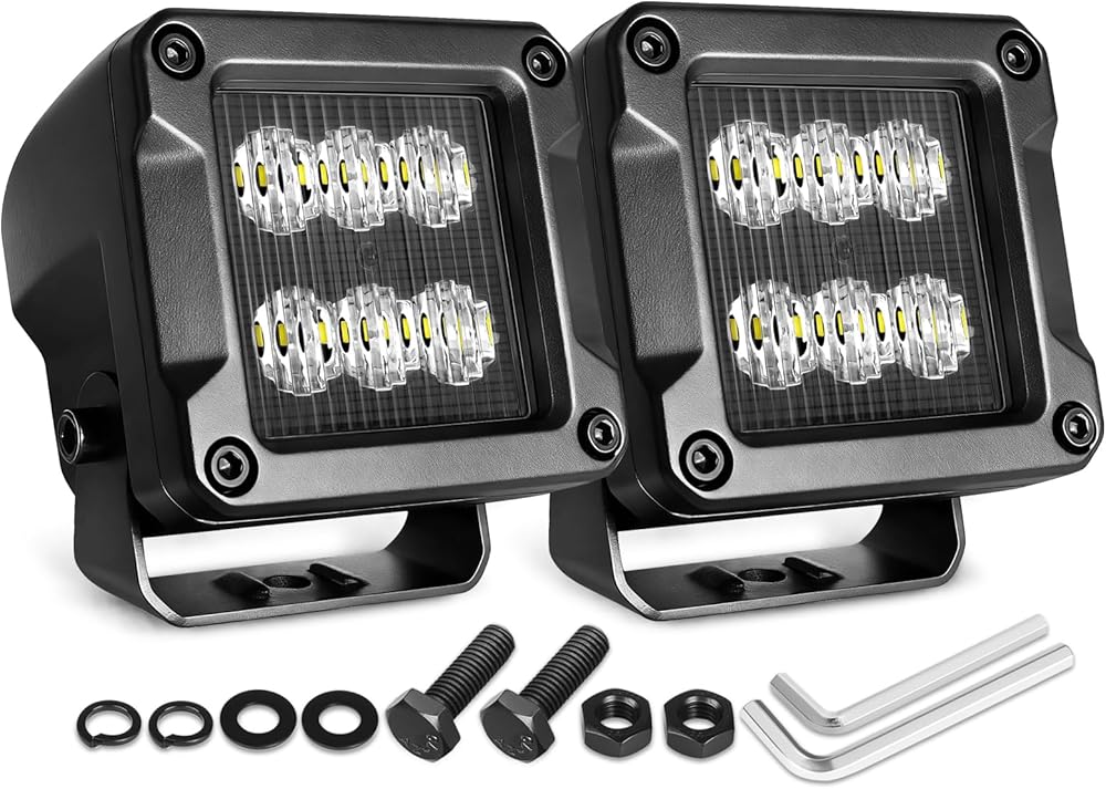 STEALTH ALL-BLACK DESIGN: Completely black housing, hardware, and brackets create a discreet OEM-style appearance that integrates seamlessly with trucks, Jeeps, and UTVs, ATVs. The included shockproof pads will help you for cutting and mounting, very easy to install.