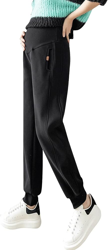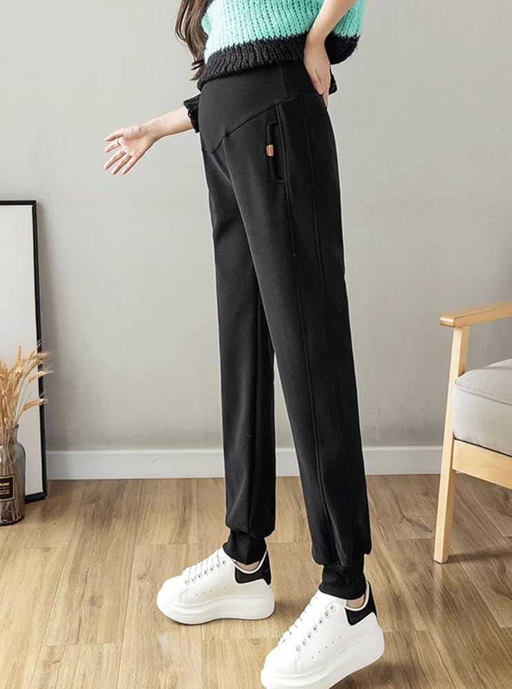 Made of soft cotton blend fabric, these cozy pregnancy jogger pants offer extra comfort and allow plenty of room for growing baby bump.
