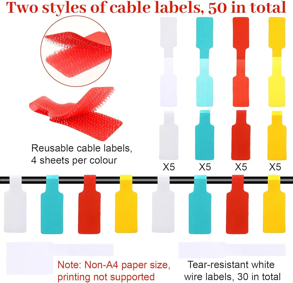 Cable Labels for Cords:Waterproof and tear-resistant, these labels are suitable for indoor and outdoor use, ensuring long-lasting durability.