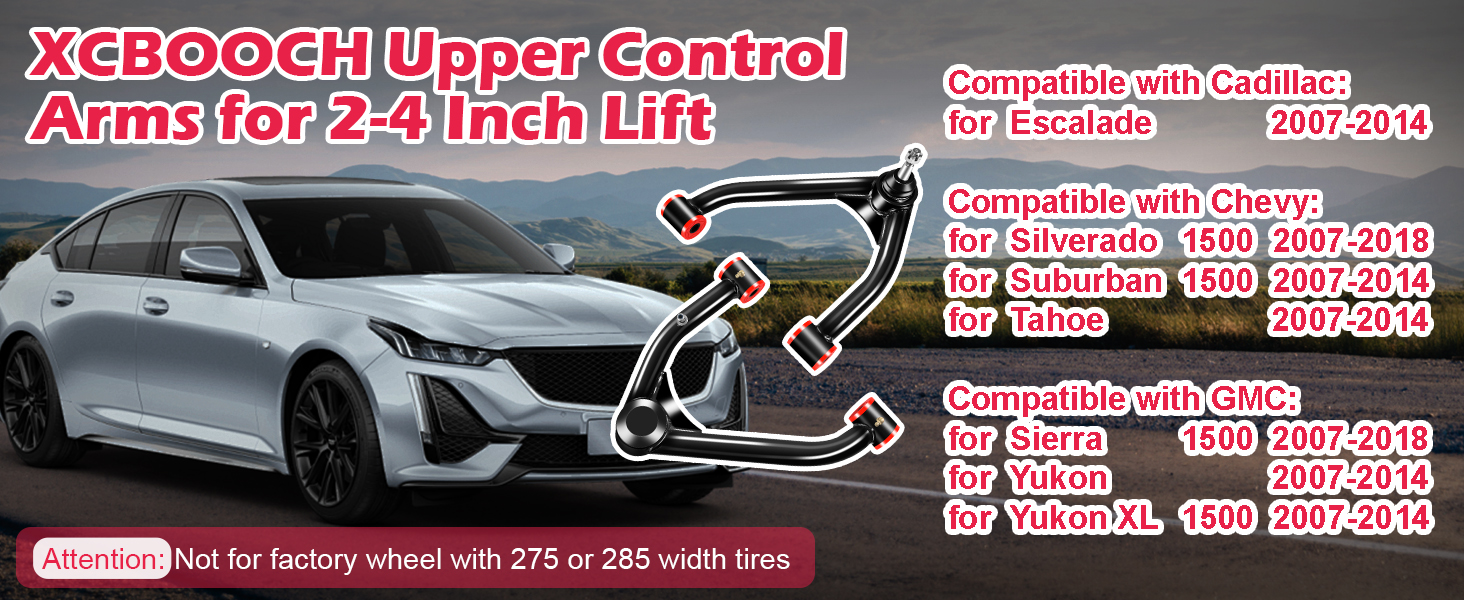 2-4 inch lift front upper control arms compatible with Chevy: for Silverado 1500 2007-2014, for Silverado 1500 new body 2014-2018, for Suburban 1500 2007-2014, for Tahoe 2007-2014