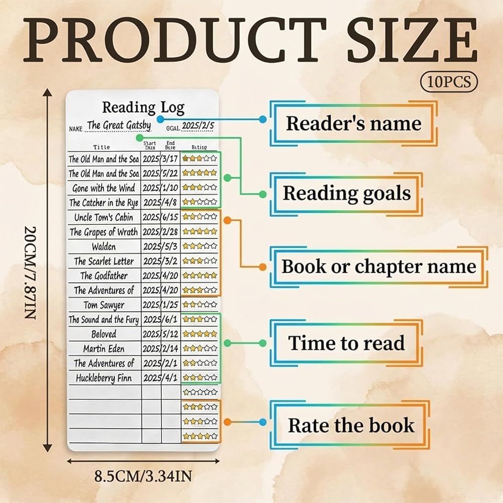 All-in-One Reading Tracker: Combines page holder, reading log, and score tracker in one. Clearly marked sections for book title, reading dates, and ratings—easy to record and reference your reading progress at a glance