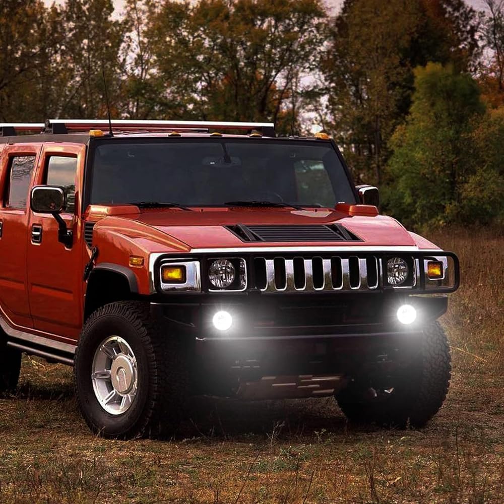 LED DRL Daytime Running Fog Lights Assembly Replacement for 2003-2009 H2, White Halo Ring DRL Driving Lamp + Fog Lamp Kit, Replace OE 15060533, 15258697, 15205899