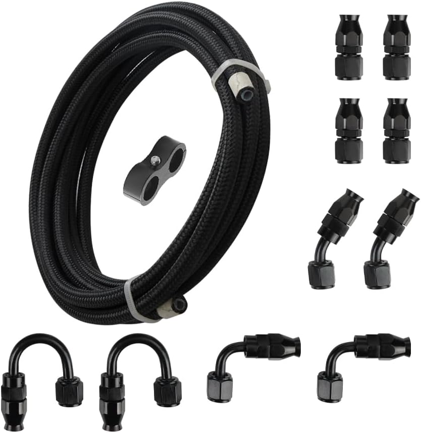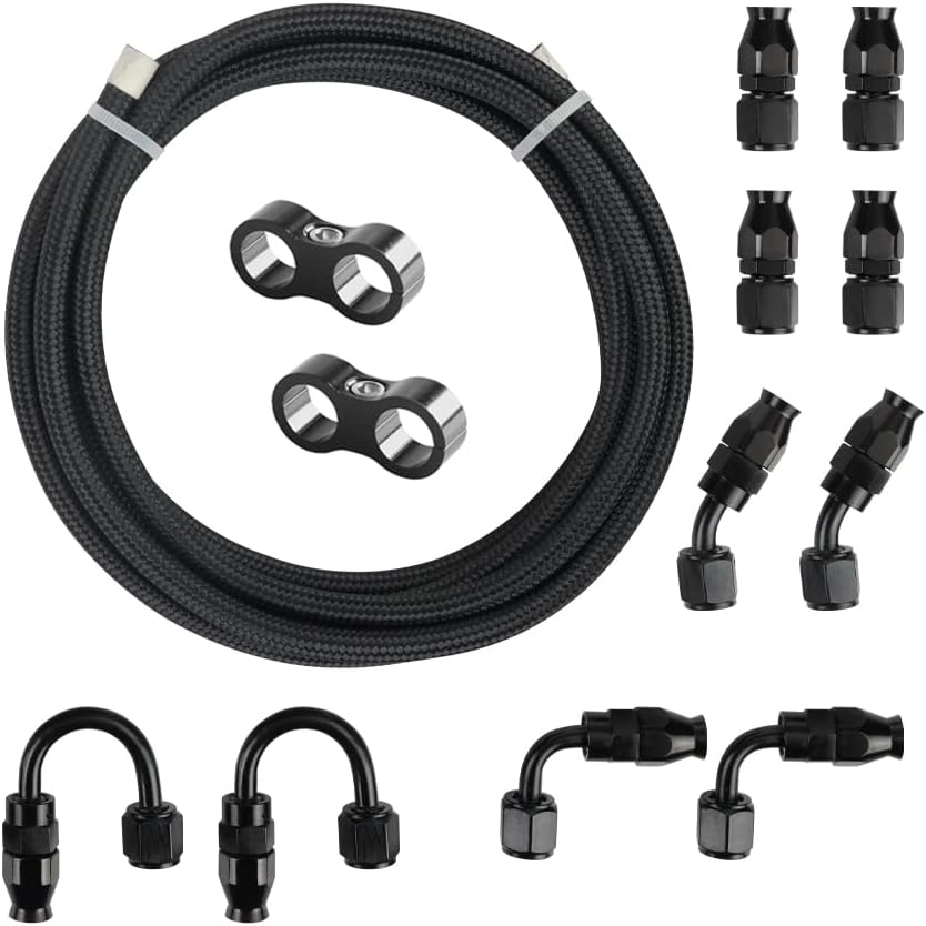 4AN PTFE Fuel Line Kit, AN4 E85 Fuel Hose Line 10FT Black 1054BK