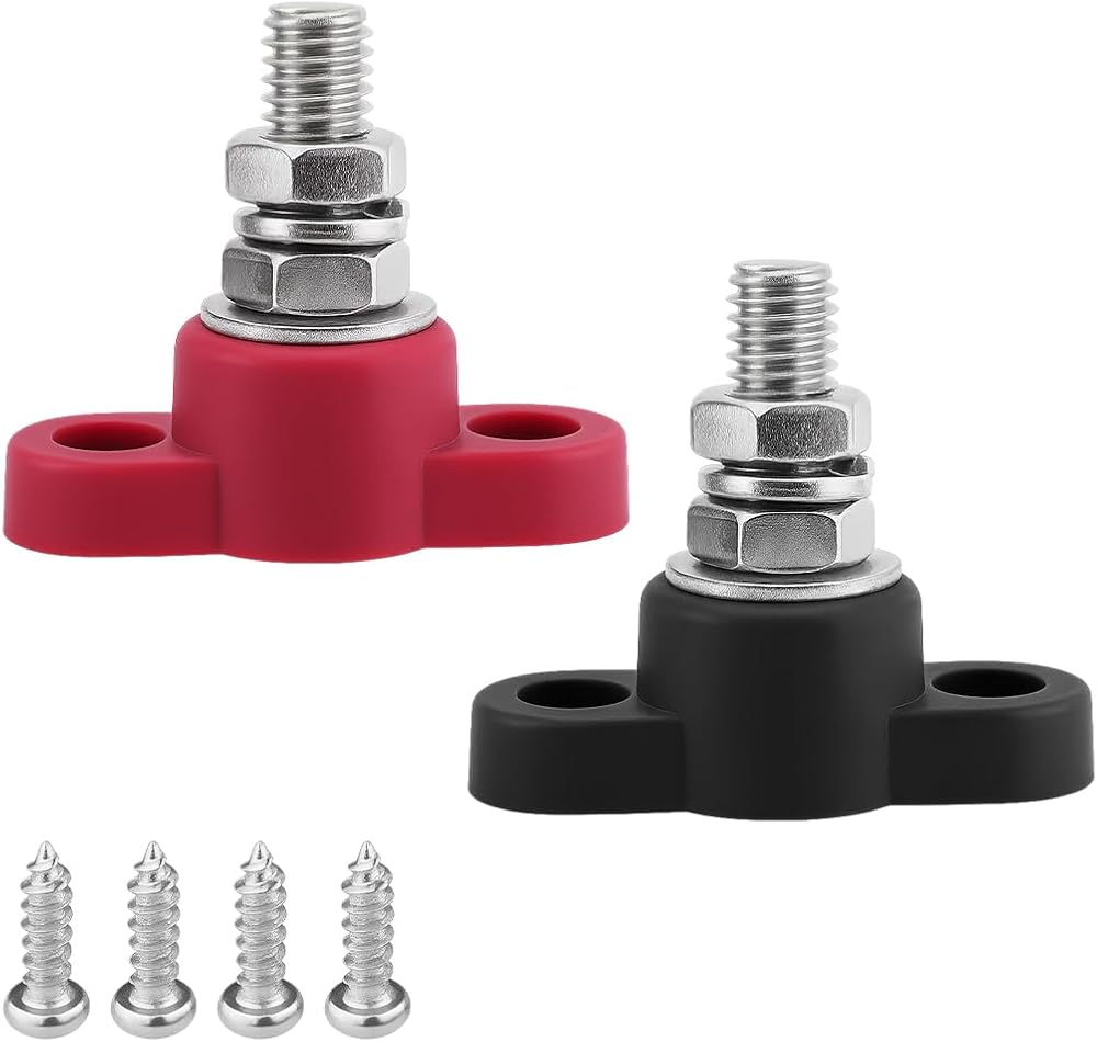 • Color Differentiation: This product has a clear polarity design of red power supply and black grounding, which can accurately connect battery wires, avoid wiring errors, and ensure electrical safety and circuit stability from the root. Equipped with screw mounting holes, the installation position can be flexibly adjusted according to the car space and circuit layout, adapting to different car models and modification layouts.
