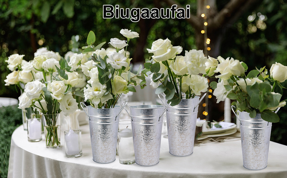 【Convenient Size and Portability】Each pack includes 6 metal Farmhouse French Flower Buckets Vases , (8 inches height, top diameter 5 inches, bottom diameter 3.54 inches) The convenient size and sturdy handles make them easy to carry and suitable for both indoor and outdoor use.