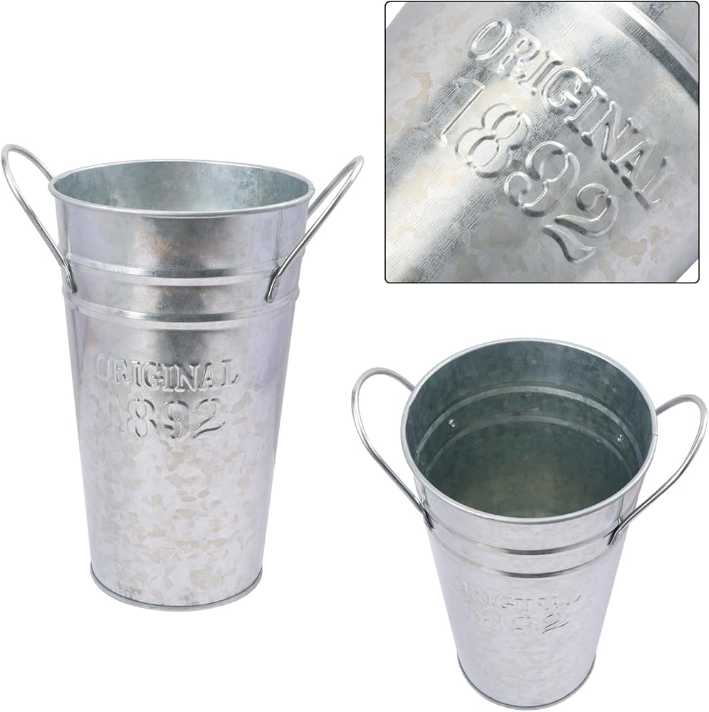 【Vintage-inspired Design】Our 8 Inch Farmhouse French Flower Buckets features a charming and rustic design that adds a touch of vintage elegance to any space. The silver metallic finish and ornamental details make it a standout piece in home decor.