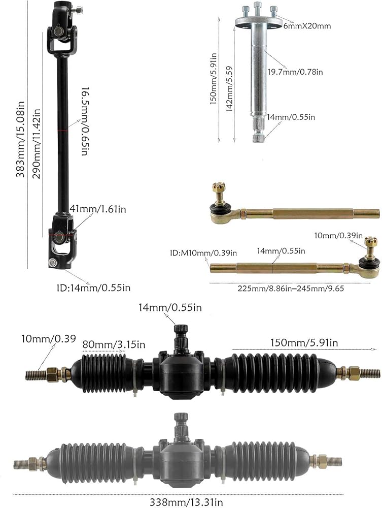 Package include: Steering wheel + Tie rod + Rack+ Adjustable shaft