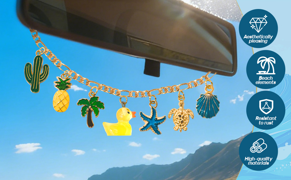 Cute Touch for Your Car Interior: Add a pop of color and charm to your dashboard area with this ocean-themed decor. Car mirror hanging chain a simple way to make your car feel more cozy, fun, and uniquely you