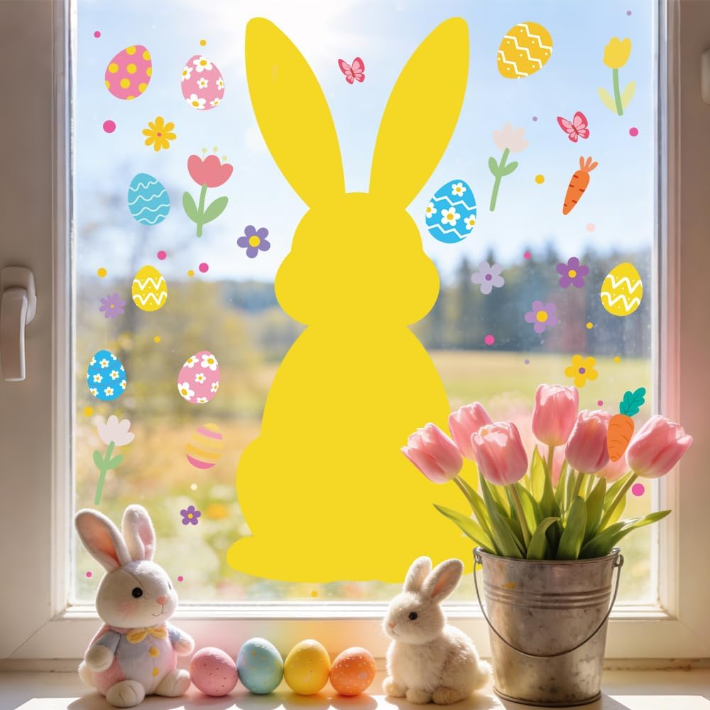 - Adorable easter window clings, look nice on window, this package comes in 6 pieces, please line up the 2 sections of the bunny bodies before using.