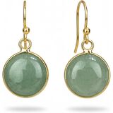 Jade Earrings, Gold Plated Round Green Stone Earrings for Women, Handmade Natural Crystal Birthstone Dangle Earrings Jewelry