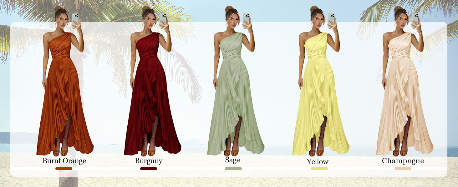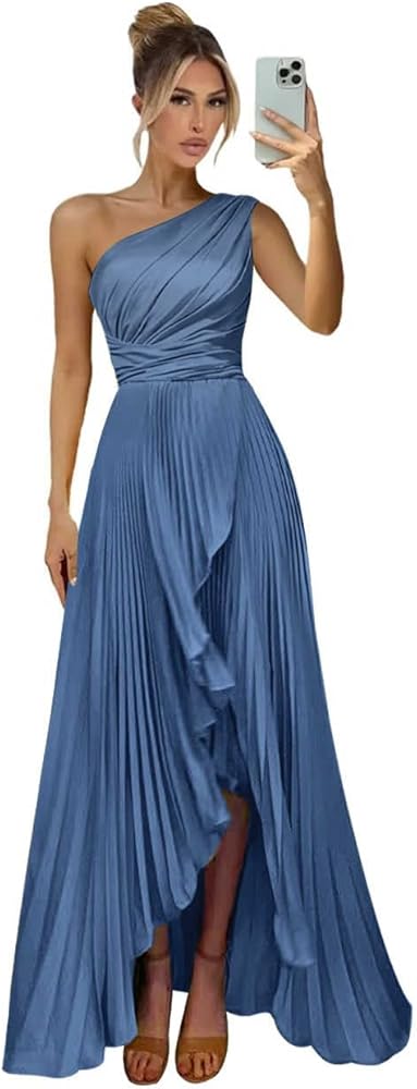 Welcome to Plakend, the store mainly sells bridesmaid dresses, prom dresses, flower girl dress and all kind of formal dress for women Linearity: Flowy A-Line Feature: Satin, One Shoulder, Sleeveless, Pleated, Empire Waist, High Low A-Line, with Slit, Long Dress Boho Gown, Ruffles,Off the Shoulder, Tea Length Formal Dress Back: Lace Up Backless 1.Please confirm your size with us after placing your order. 2.Of course, we also support free customized size, you can tell us your size after you place an order, we will make the dress according to your size. Bust:_____ inch Waist:_____ inch Hips:_____ inch Shoulder to Floor: _____ inch 3.If you have any questions, please ask us, we will provide you with the most effective solution as soon as possible!