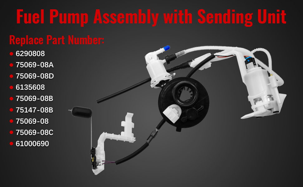 【Part Number】The fuel pump assembly part number is 62908-08, 75069-08D, 6290808, 6135608, 75069-08, 75069-08A, 75069-08B, 75069-08C, 75147-08B, 61000690
