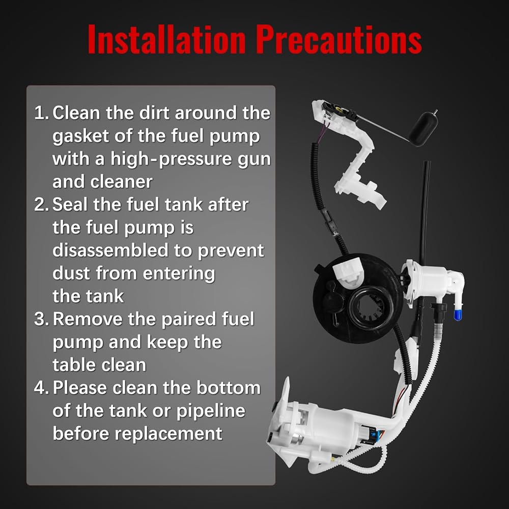 【Easy to Install】This fuel pump is designed to meet OEM specifications , can be replaced directly and work quickly without modification. Please clean the edge of the fuel tank before installation to avoid residue entering the fuel pump and causing failure