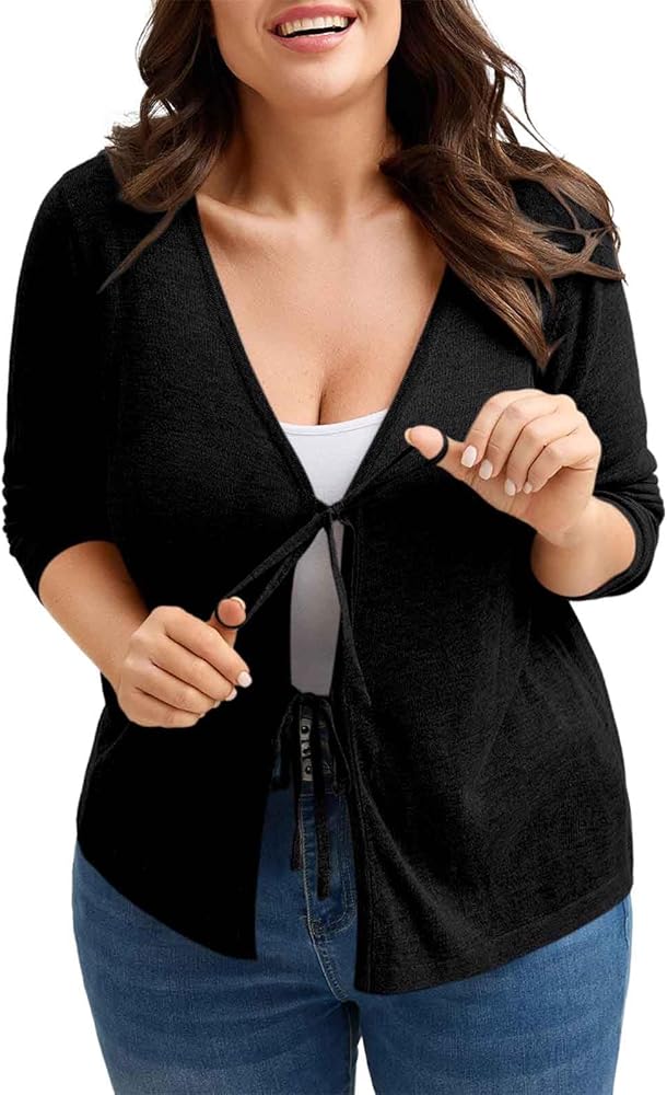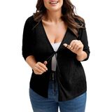 【Dual Tie Front Design】Two ties, one style. Slouchy for lazy days, cinched for waist definition. Great for plus size cardigan fans, no more shapeless problems.