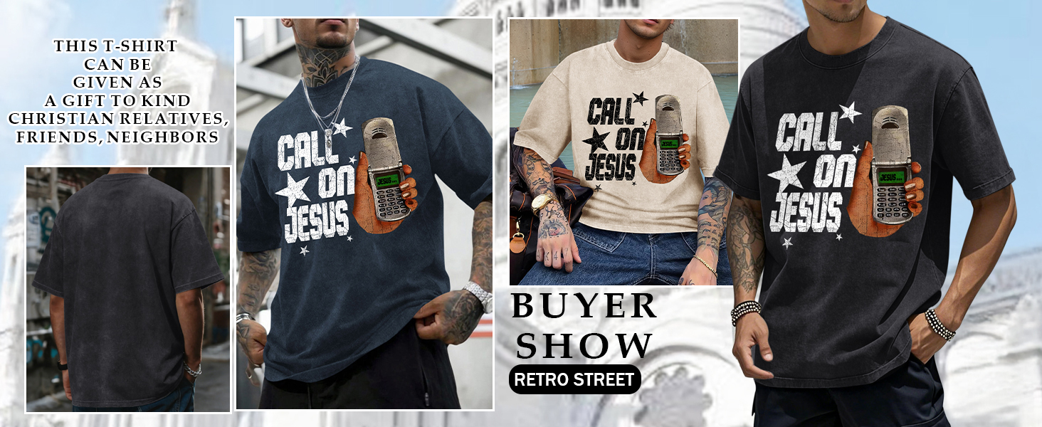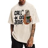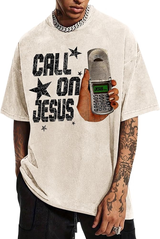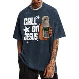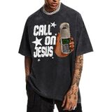 Design:Features a retro phone “Call On Jesus” print that combines faith, humor, and personality. The distressed vintage look gives this Jesus graphic tee a unique, eye-catching style,A must-have piece for anyone who loves gospel-themed clothing