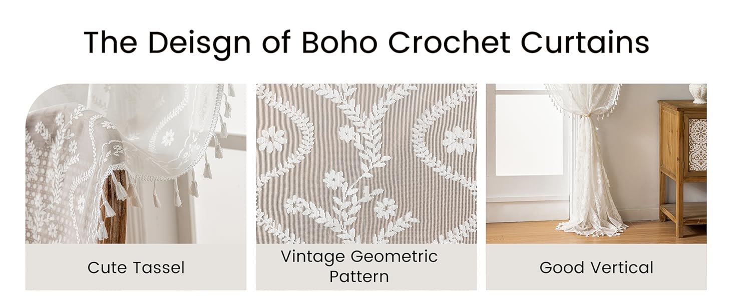 Vintage home decor:Enhance your living space with our exquisite white lace curtains, where elegance meets tranquility. Designed to infuse every room with refined sophistication and a serene ambiance, these curtains capture the gentle essence of nature. The soothing white hue evokes the freshness of the outdoors—perfect for all season, when a touch of natural beauty can transform your home into a peaceful retreat
