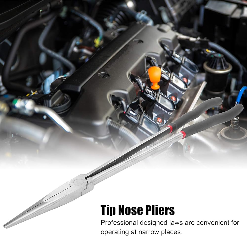 Needle Nose Pliers: Featuring a long handle, tip nose, and professionally designed jaws, this tool is great for narrow places. 16 Inch extra long needle nose pliers are used with less effort and are convenient for working in limited areas or tight spaces