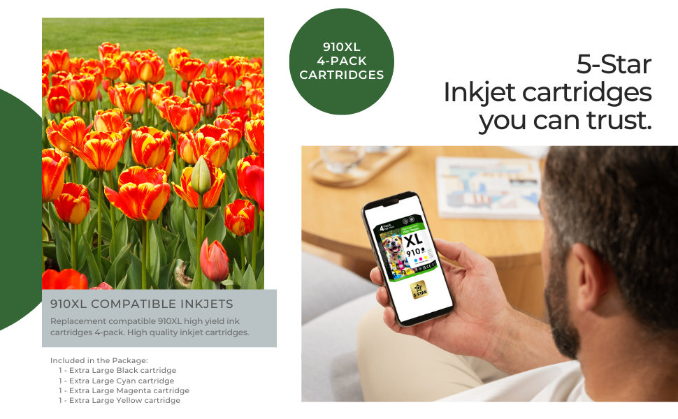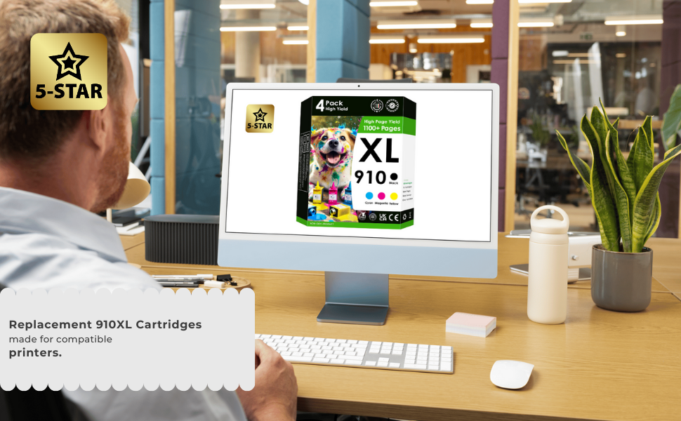 910XL Black and 910 (Cyan, Magenta, Yellow) 4 cartridges Works with Officejet Pro 8100/8600/251/276.