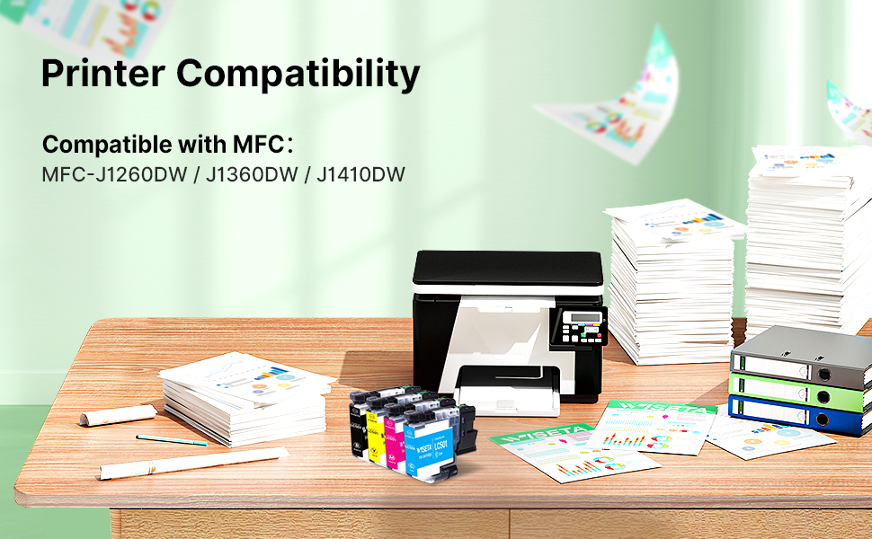 Replacement for Brother MFC-J1360DW Ink Cartridges, Cost-Effective, High Yield: Up to 250 pages per LC501 Black and 200 pages per Color cartridge (at 5% coverage). Print more documents for home office or school at a fraction of the cost.