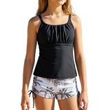 【High-Elastic & Skin-Friendly Fabric】Tankini swimsuits crafted from 80% Nylon and 20% Spandex, this bathing suit fabric offers superior stretch, exceptional softness, and a smooth, comfortable feel. It's quick-drying, breathable, and features vibrant, fade-resistant prints. The durable, chlorine-resistant material is made to last through many seasons of active play for girls ages 7 to 16