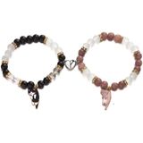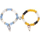 2Pcs Couple Friendship Bracelets Cute Kawaii Cartoon Cat Heart Matching Bracelet Y2k Cat Glass Beaded Elastic Bracelet Valentine's Day in Kuwait