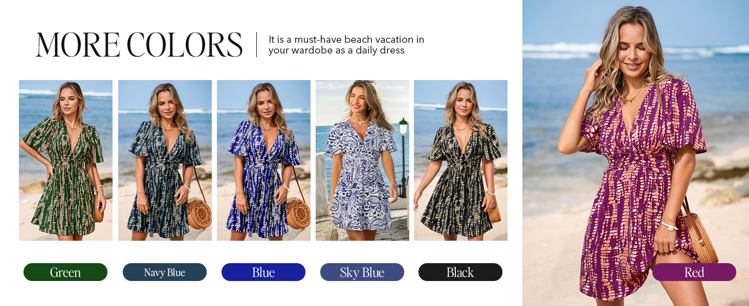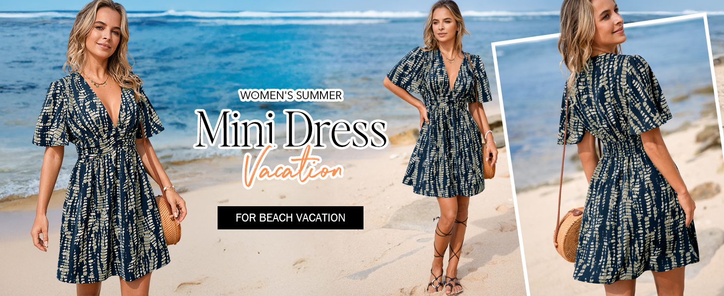 Features: Discover our vacation dress featuring plunging v neck short dress, short sleeve navy blue mini dress and abstract elastic waist smocked dress. This flowy dresses can be styled with earrings, a necklace, sandals, heels, a hat, and sunglasses