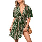 Unique Design: This summer casual dress features plunging v neck, short sleeve, elastic waist and abstract print. It is a must-have beach vacation in your wardobe as a daily dress