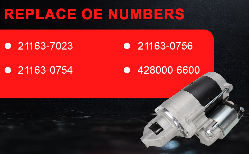 1.Direct OE Replacement: Designed to match the exact fit, form, and function of the original starter for specific vehicle models. 2.Durable Construction: Features high-quality materials and robust components, including a powerful motor and a reliable solenoid for long service life. 3.Precise Engagement: Engineered with accurate pinion gear geometry and engagement mechanism to ensure smooth and reliable meshing with the flywheel. 4.Optimal Performance: Delivers consistent and high-torque cranking power for fast and reliable engine starts in all conditions.