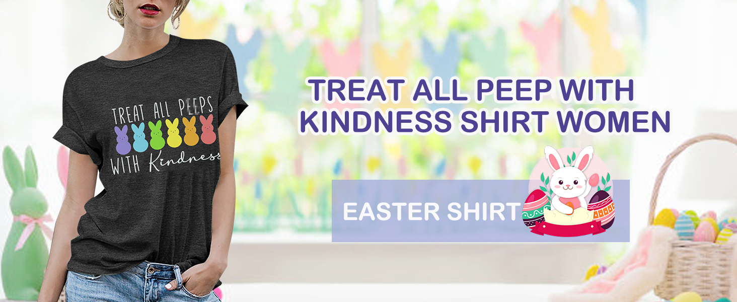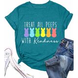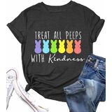 Features : The treat all peep with kindness letter print and cute bunny graphic, casual lightweight short sleeve tee, classical crewneck design, no tight feeling around your neck.