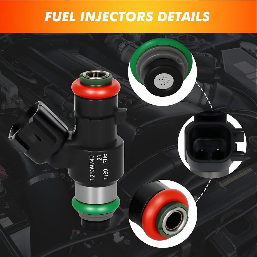 High-Quality Materials: Made with high-quality materials including heat-resistant polymer and corrosion-resistant internals, these injectors are built to handle the thermal and mechanical stresses of daily driving, stop-and-go traffic, and extended road trips.