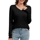 Features: black sweaters for women, dressy causal, v neck, long sleeve, black tops for women, lightweight, cable knit fabric make the casual pullover sweater for women look more fashion and chic
