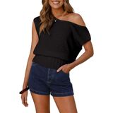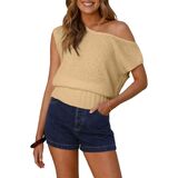 Features - Short sleeve sweater tops for women feature with one shoulder, asymmetric collar, boat neck, ribbed knit and solid color, summer casual tops for women, light weight pullover sweater vests,rib knit pullover tops