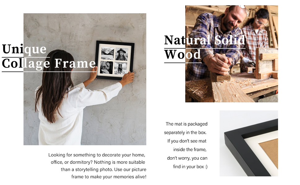 4 in One: Display four 3x3" photos with mat, or one 8x8" photo without mat. Every frame off-white mat included (Individually packaged, not inside the frame).