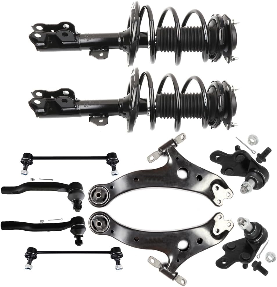 Package Included - 2pcs Front Complete Strut Assembly +2pcs Control Arm and Ball Joint Assembly +2pcs Stabilizer Bar Link +2pcs Tie Rod End +2pcs Tie Rod End