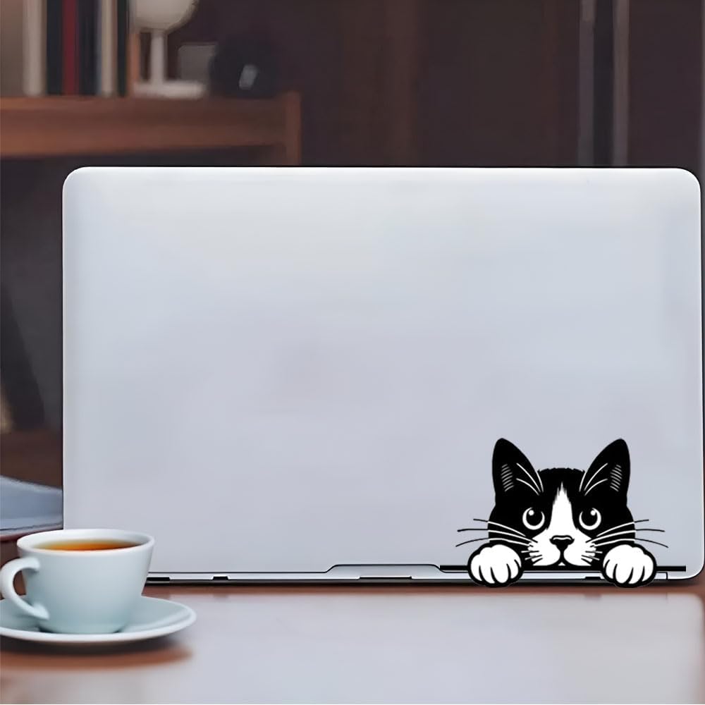 Add a playful touch to your vehicle with this charming black and white peeking cat car window decal set. The design features an adorable tuxedo cat with bright eyes and perky ears, appearing to peek over an invisible ledge with its paws resting on top. Made from durable vinyl material, these stickers are perfect for rear windows, side windows, or any smooth surface on your car. The striking contrast of the black and white design ensures high visibility and eye-catching appeal. Each pack includes two identical decals, allowing you to decorate multiple vehicles or create a matching pair on your car. The clean, crisp lines and professional finish make these decals look like a natural addition to any vehicle. Easy to apply and built to withstand various weather conditions, these decals add personality to your ride while maintaining a sophisticated appearance. The universal design complements any car color or model, making it an ideal choice for cat lovers looking to personalize their vehicles with style.