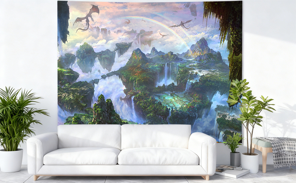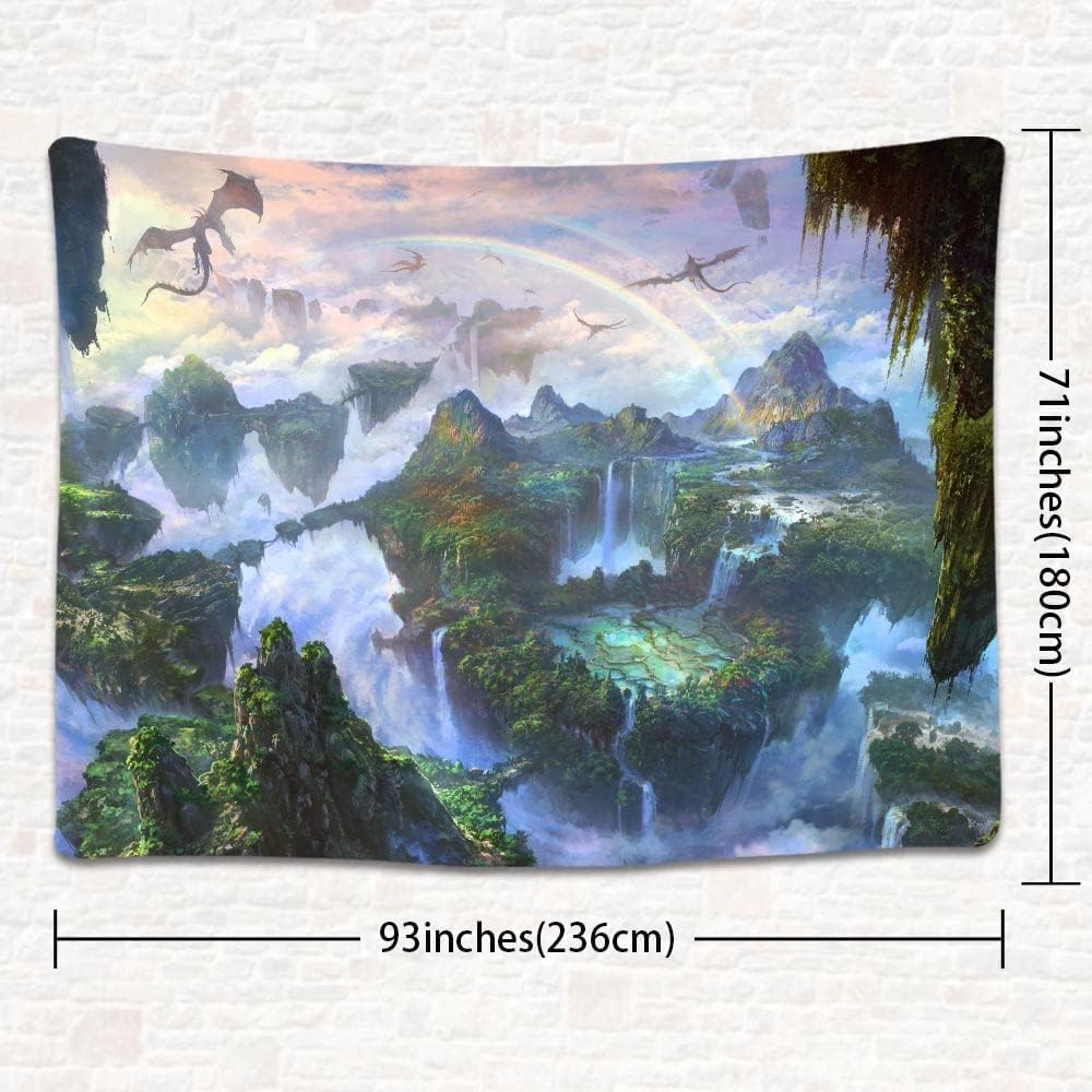 SHRAPHY Fantasy World Tapestry Magic Flying Dragon Tapestry Large 93x71 Inches Fairy Tale Fairyland Art Wall Hanging Tapestry for Living Room Bedroom GTXPUH556