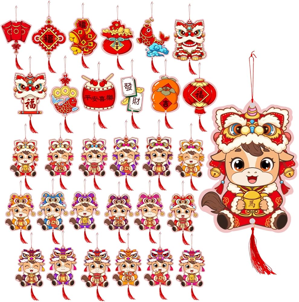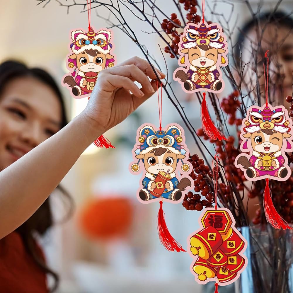 hang them on New Year trees, indoor plants, doorways, windows, gift packaging, office desks, restaurant entrances, party backdrops, or classroom bulletin boards. Whether decorating a cozy corner or a full commercial space, they create strong visual impact and instantly communicate the warmth and spirit of the Spring Festival.