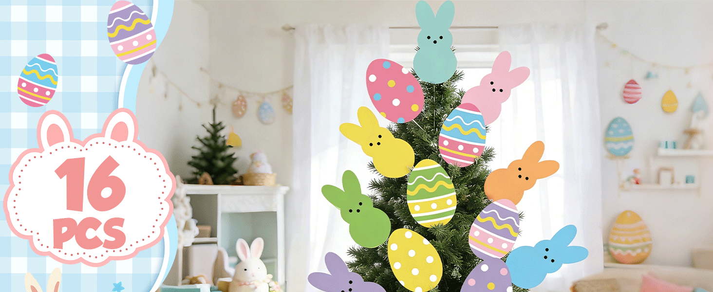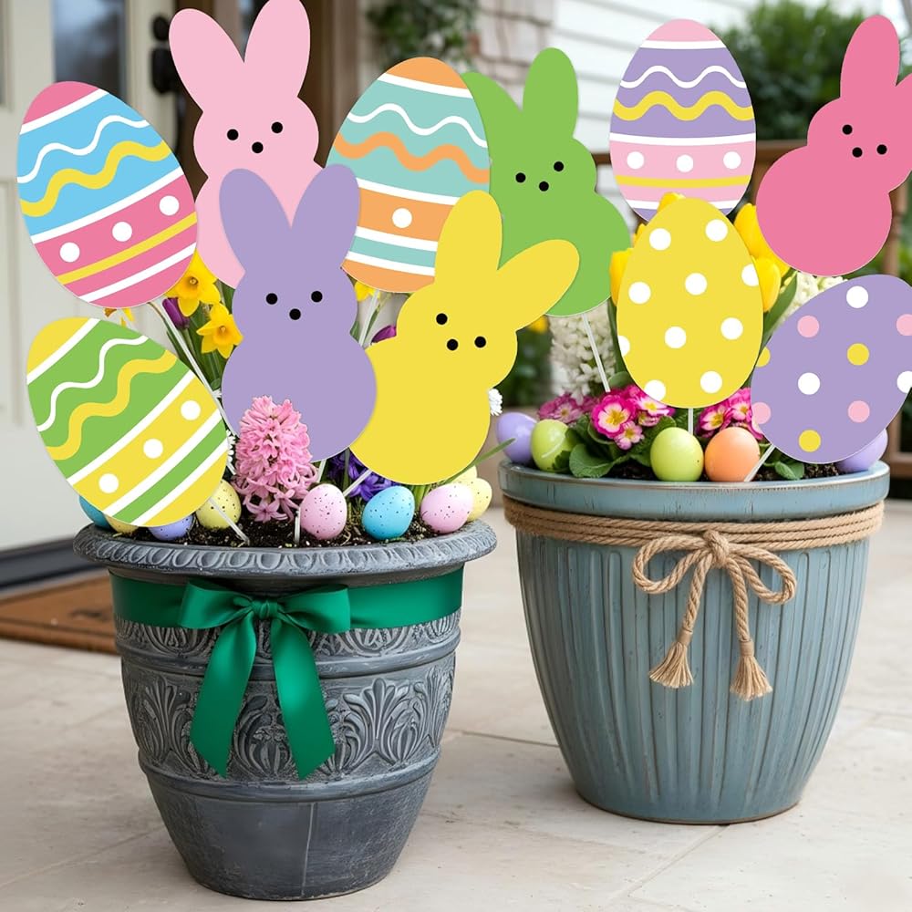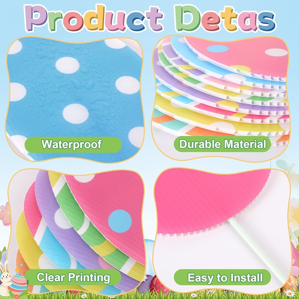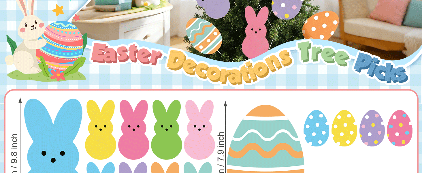 Durable material: Our Easter decorative tree picks are crafted from plastic with vivid printing, fade-resistant and waterproof; these large eggs rabbits ornaments are lightweight yet durable. they hold their shape well, making them reliable Easter decor for outdoors and indoors.