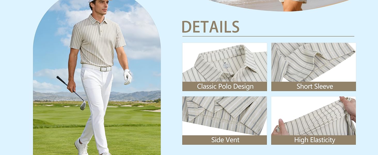 Textured Knit, Soft and Stretchy Fabric: Made with a soft and stretchy fabric blend, this polo offers ultimate comfort and flexibility, allowing for unrestricted movement on the course or off.