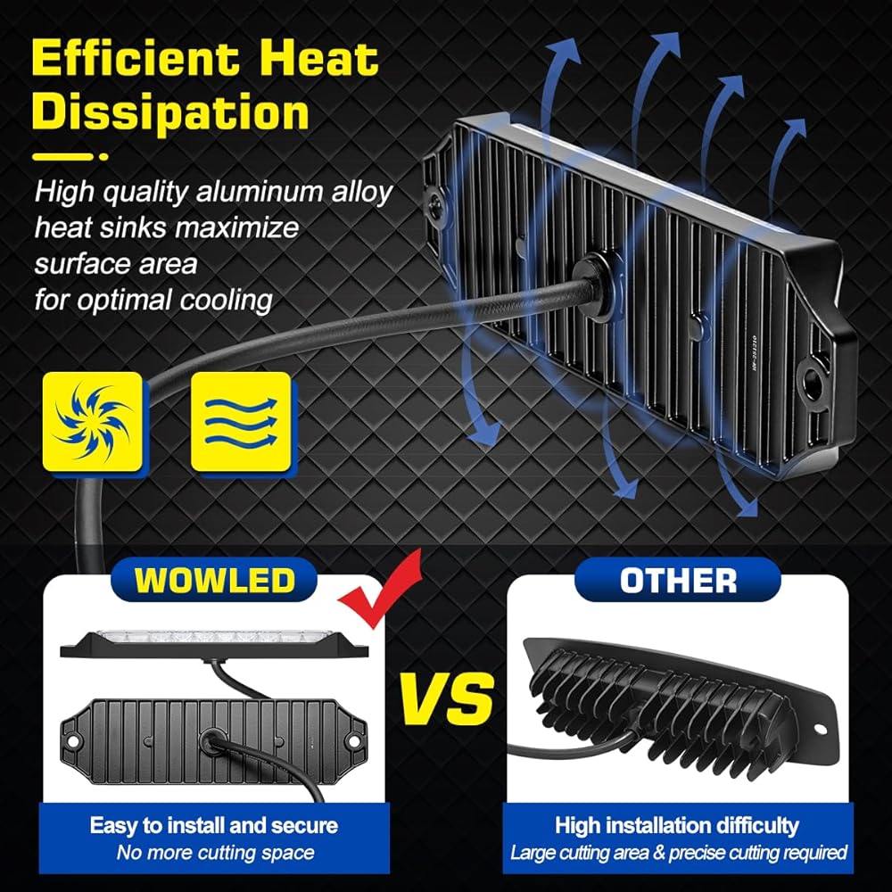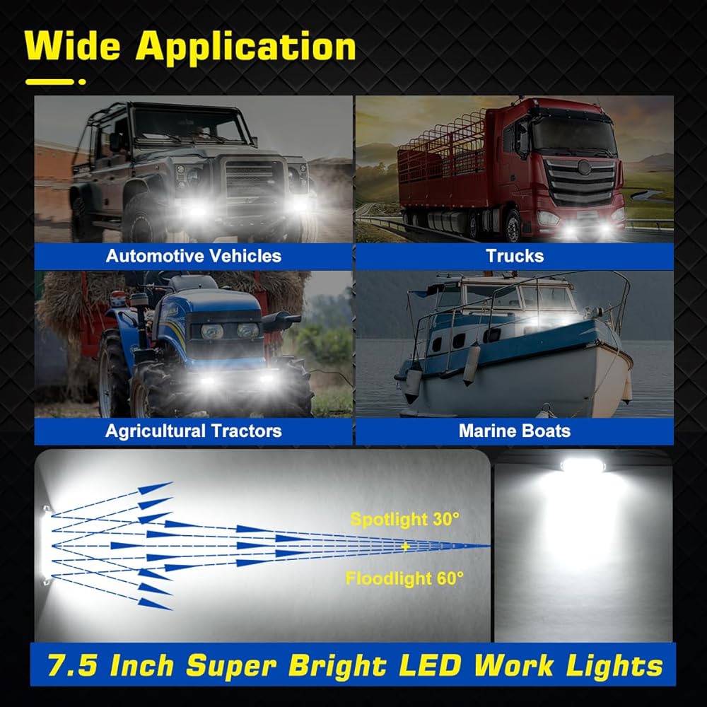 Built for the Outdoors: Whether you're navigating a muddy job site or launching a boat, these lights are sealed to IP67 standards. That means dust proof, rustproof, and ready to withstand a car wash, heavy downpour, or accidental submersion. The die-cast aluminum housing acts as a heat sink to ensure the white light stays bright.