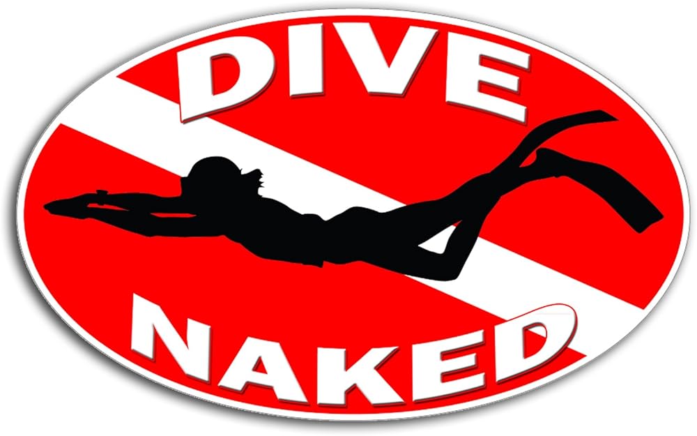 You are get 2 (TWO) Oval Dive Naked vinyl Decals. They are 5 inches wide x 3 inches tall. They are printed on 3M air release HD wrap vinyl and laminated with a High Gloss laminate. They will last for years on the back of your car, laptop, gym locker, wall, toolbox, ANY SMOOTH SURFACE etc....