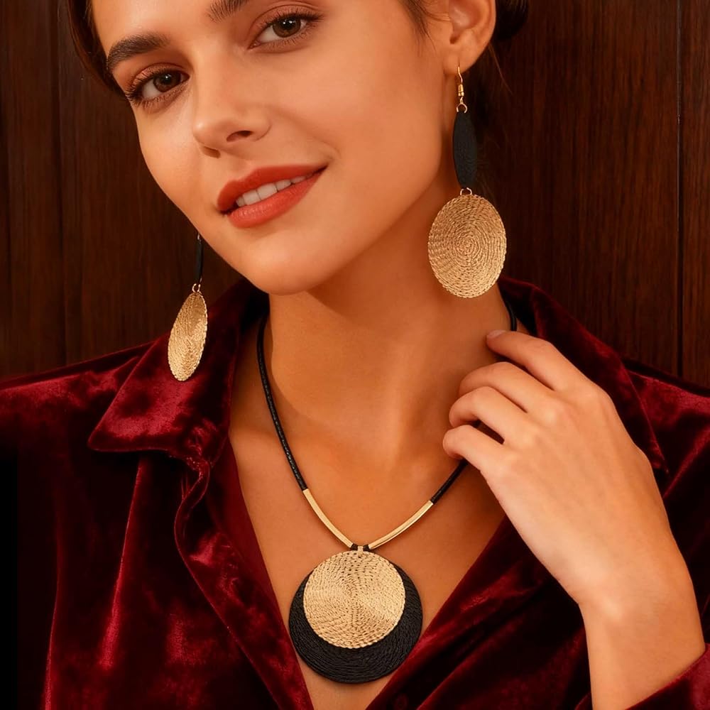 - Gold pendant necklace is made of alloy and woven leather,looks simple but stylish to wear.