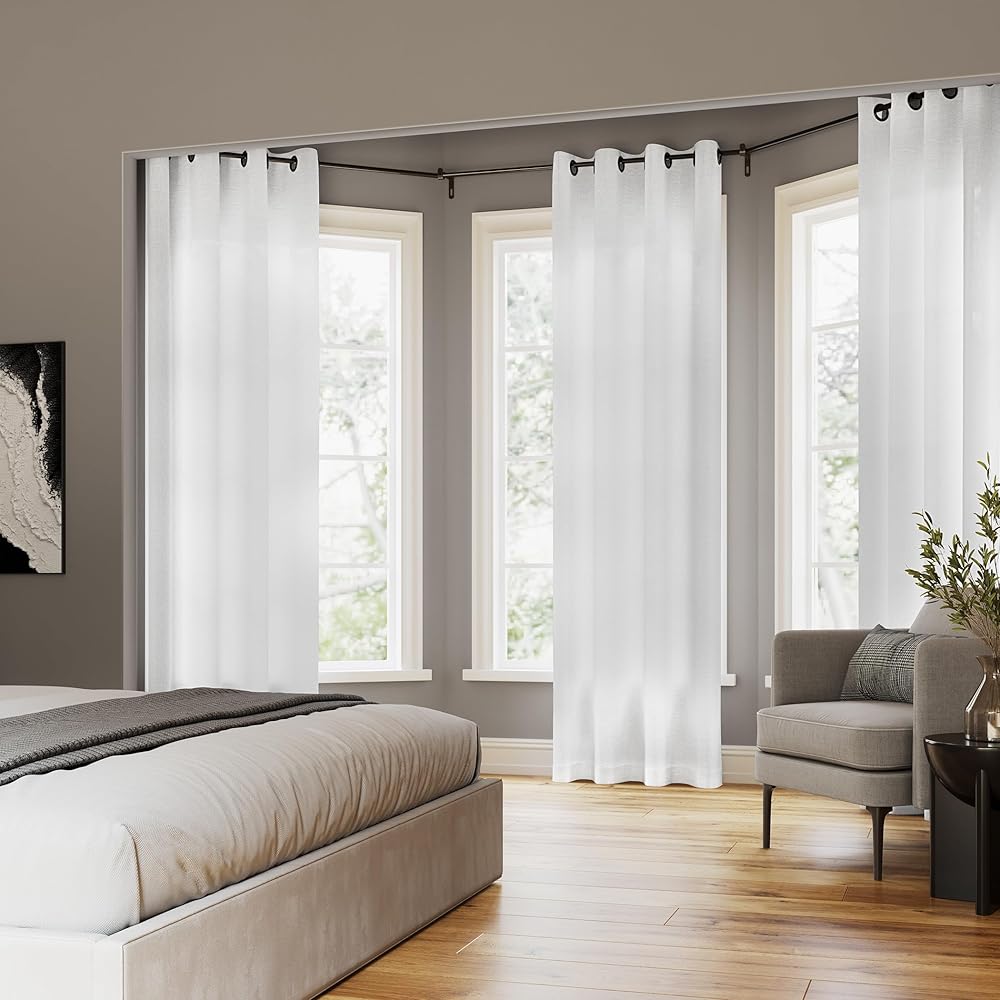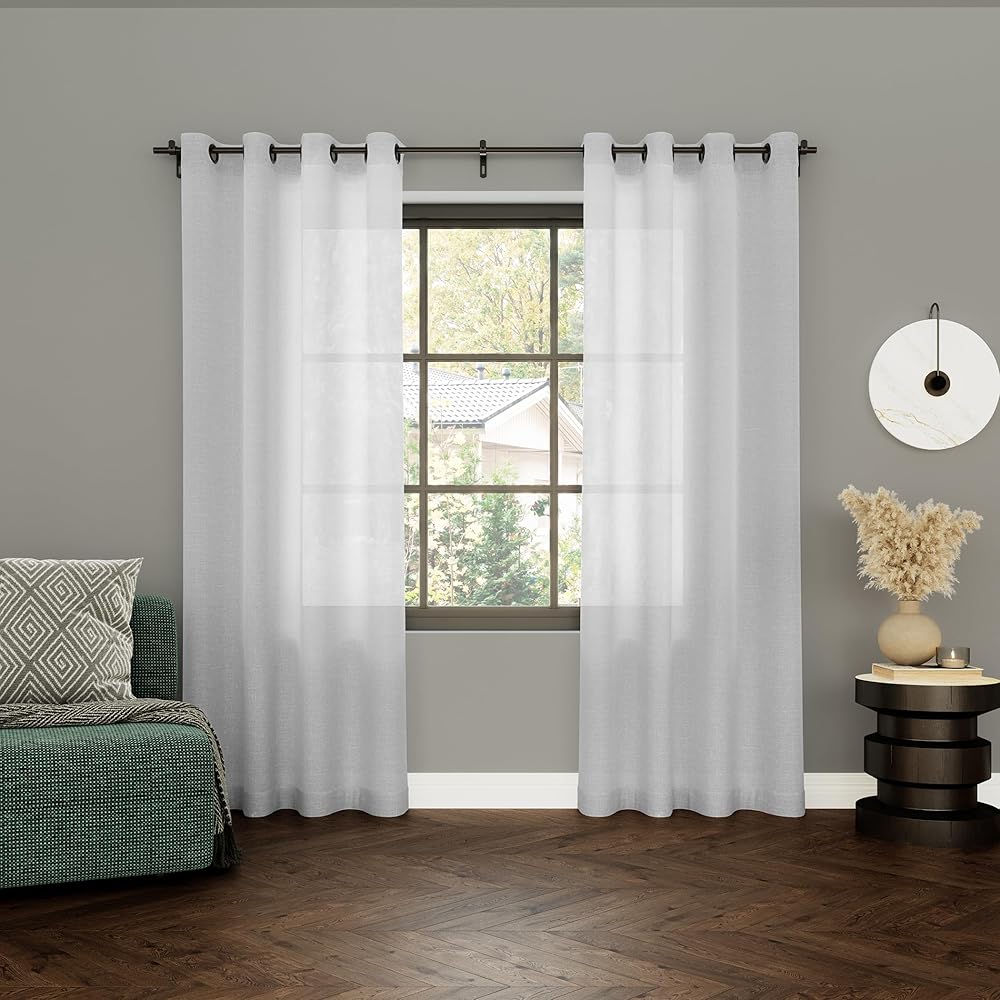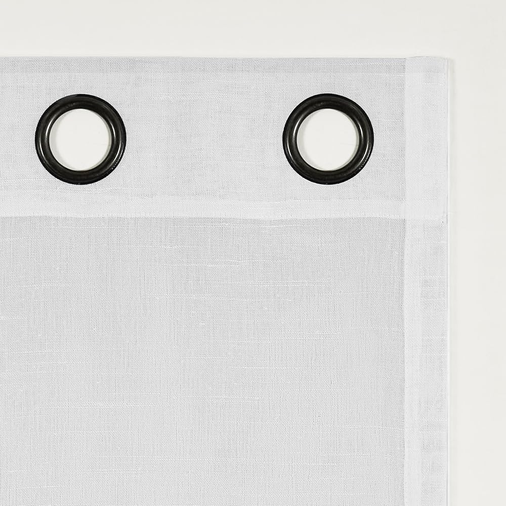 The Grommet Top Curtain from Archaeo plays on matte and shine to add dimension and style to any room of your home. The airy weave linen blend fabric with a slub texture gently filters light while enhancing privacy. Dress it up with another Archaeo curtain on a double rod, or keep it casual as a standalone sheer. Black metal grommets allow for simple slide-through installation on curtain rods up to 1 ½” in diameter. Sold as individual panels. Measure carefully before selecting your desired size and quantity. Sold as individual panels measuring 52" width by 63" length in color white. Measure carefully before selecting your desired size and quantity. Rod not included.