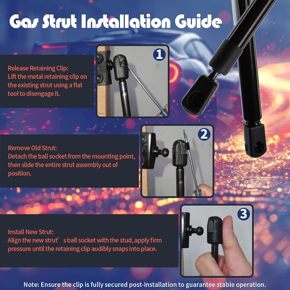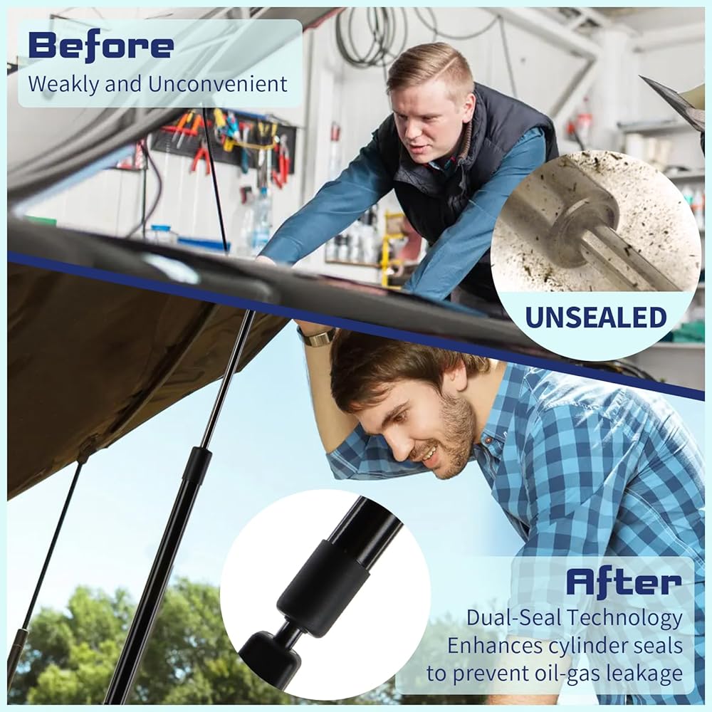 【Silent & Controlled Motion】 Engineered noiseless gas struts deliver smooth, safe hood/tailgate operation with speed-regulating technology. Ideal for heavy-duty applications, these hood shocks and struts eliminate abrupt drops while maintaining whisper-quiet performance – perfect for daily-use trunk assist systems.