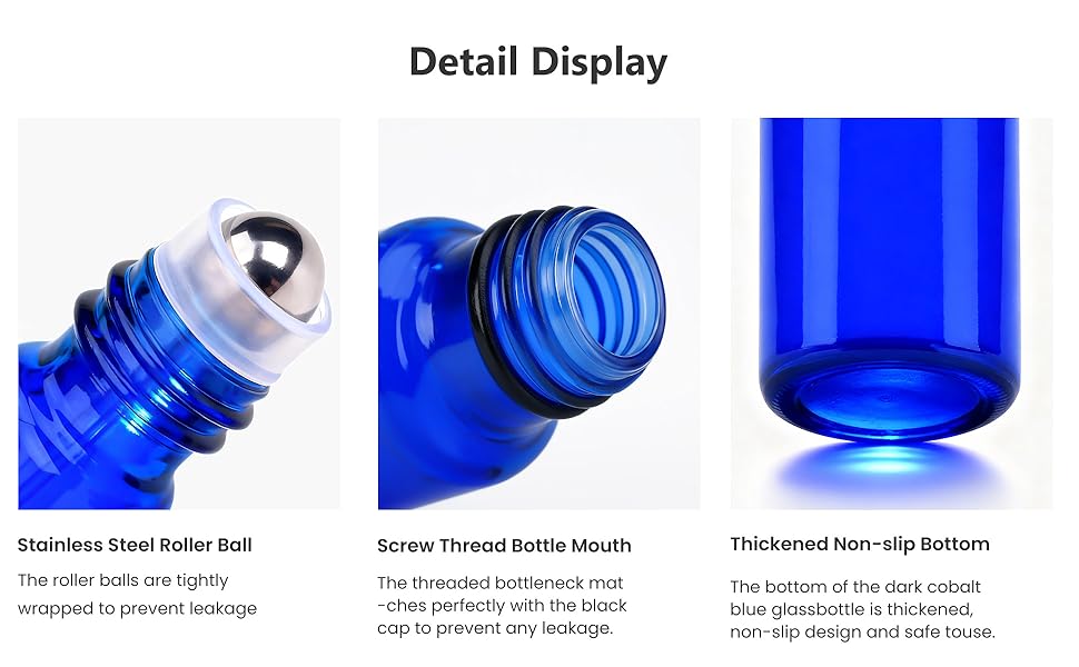 Premium Quality: The essential oil roller bottles are made of corrosion-resistant thick glass, so blue glass roller bottles are smooth and anti-shock. Our roller on bottles for oils prevents essential oil from harmful UV rays to save it from quick volatilization.